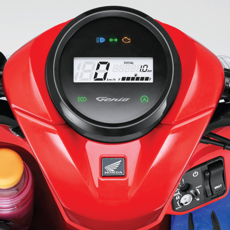 Lebih informatif dan akurat dengan speedmeter, odometer, fuel meter, eco indicator, dan logo Genio yang menyala. (*warna dapat berubah sewaktu-waktu)