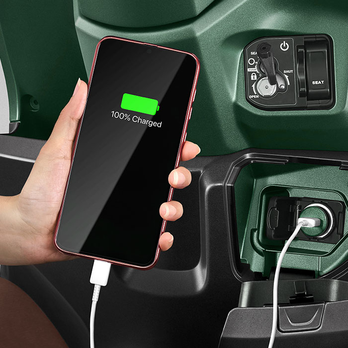 Kapasitas U-Box besar (14L) dapat memuat lebih banyak barang bawaan.Power Charger di Rak Depan